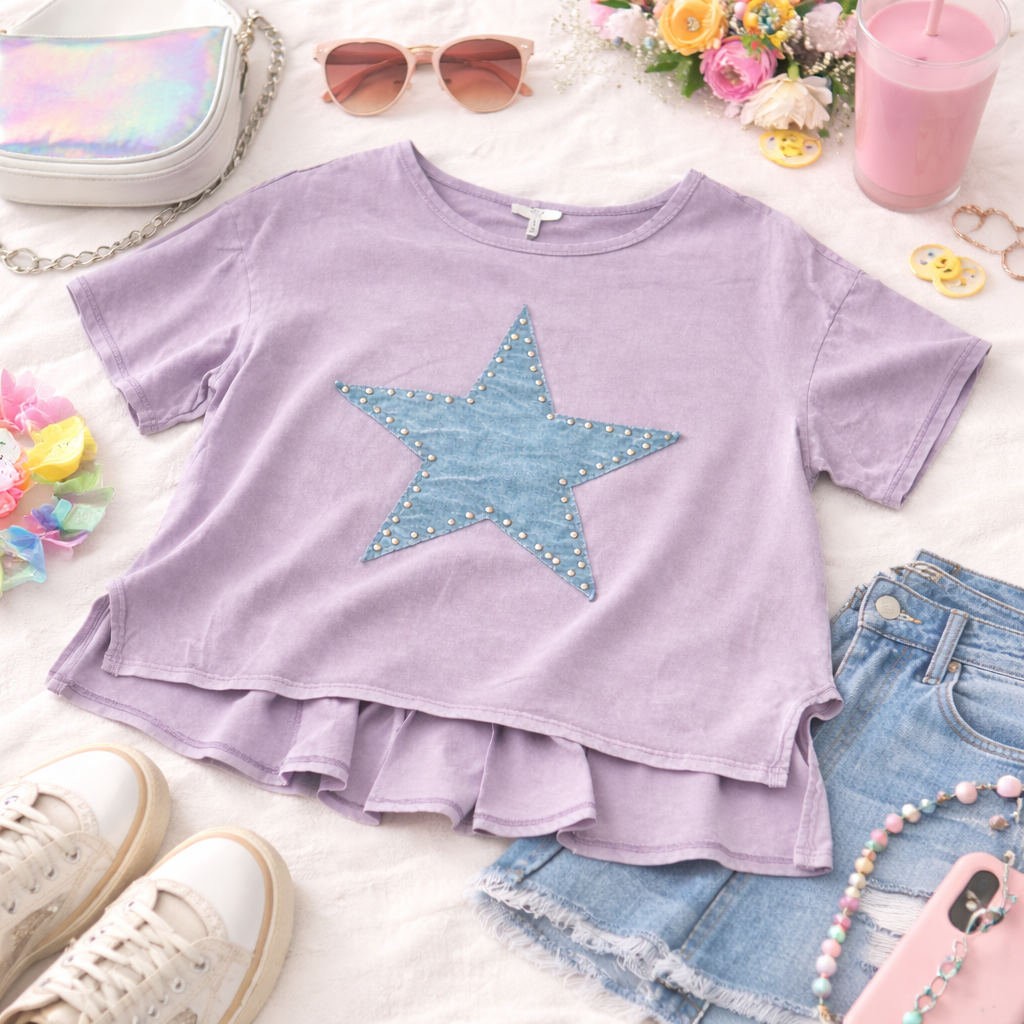Lavender oversized top with star & studs