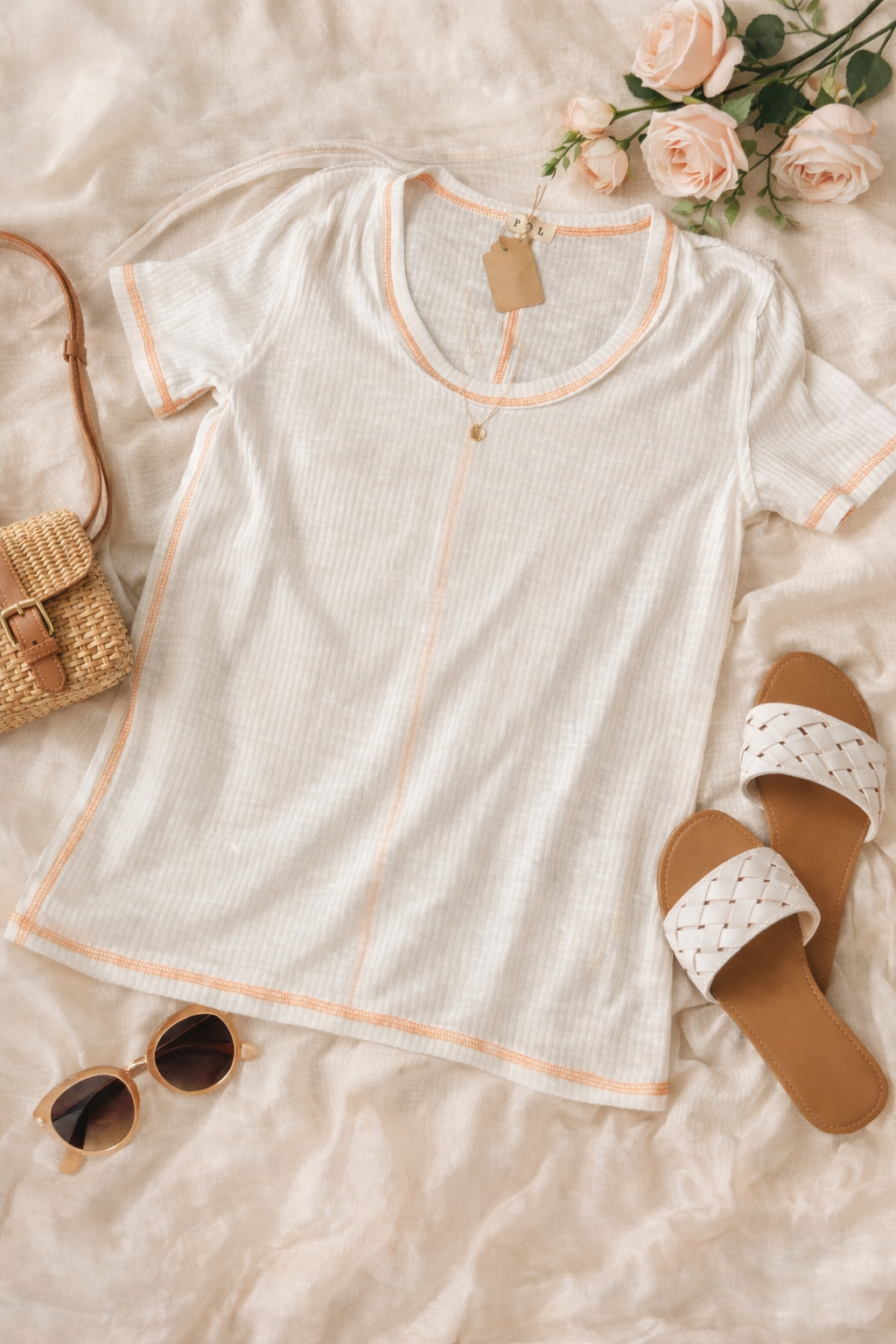 Cute tee with apricot stitching