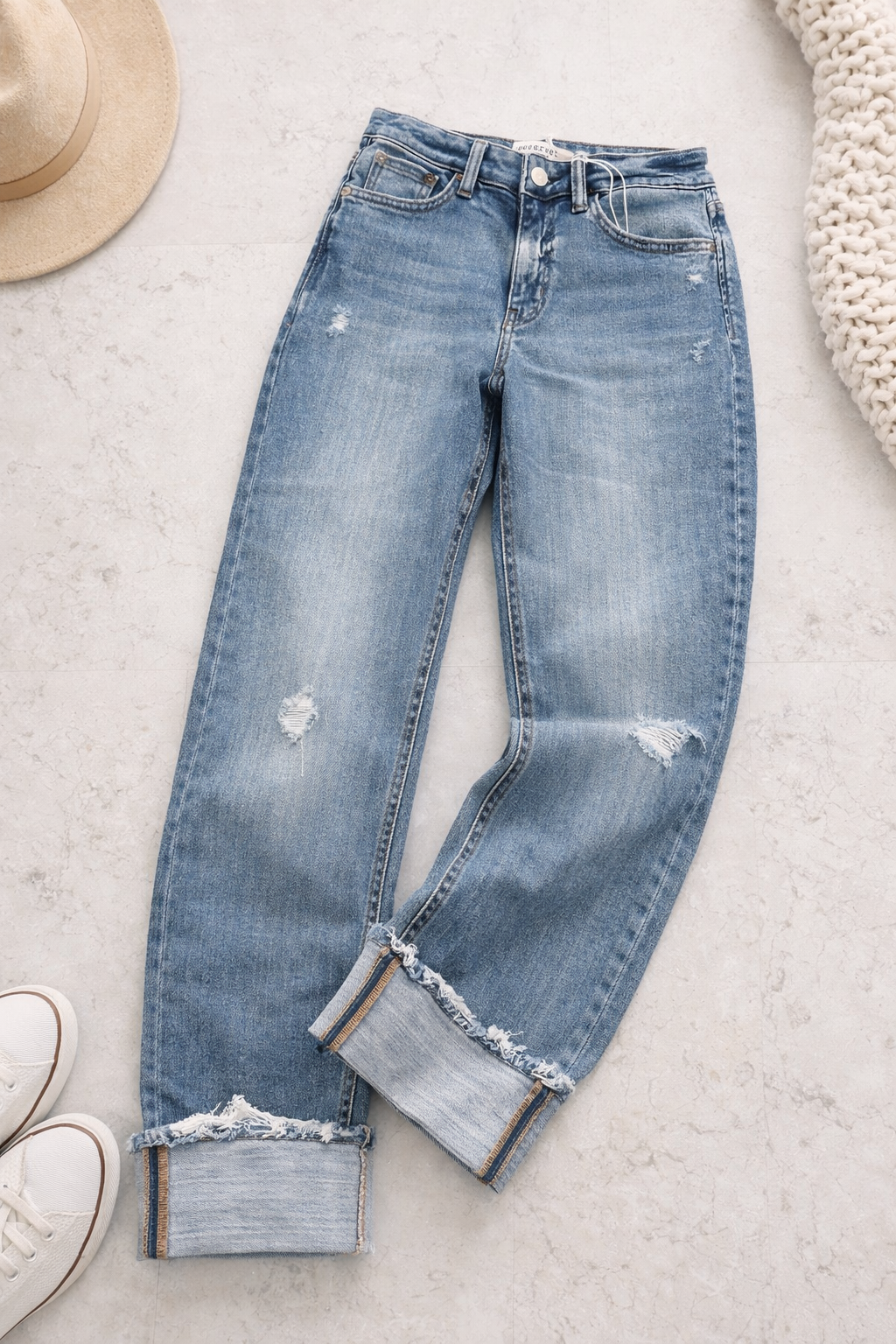 Mid Rise Cuffed Straight